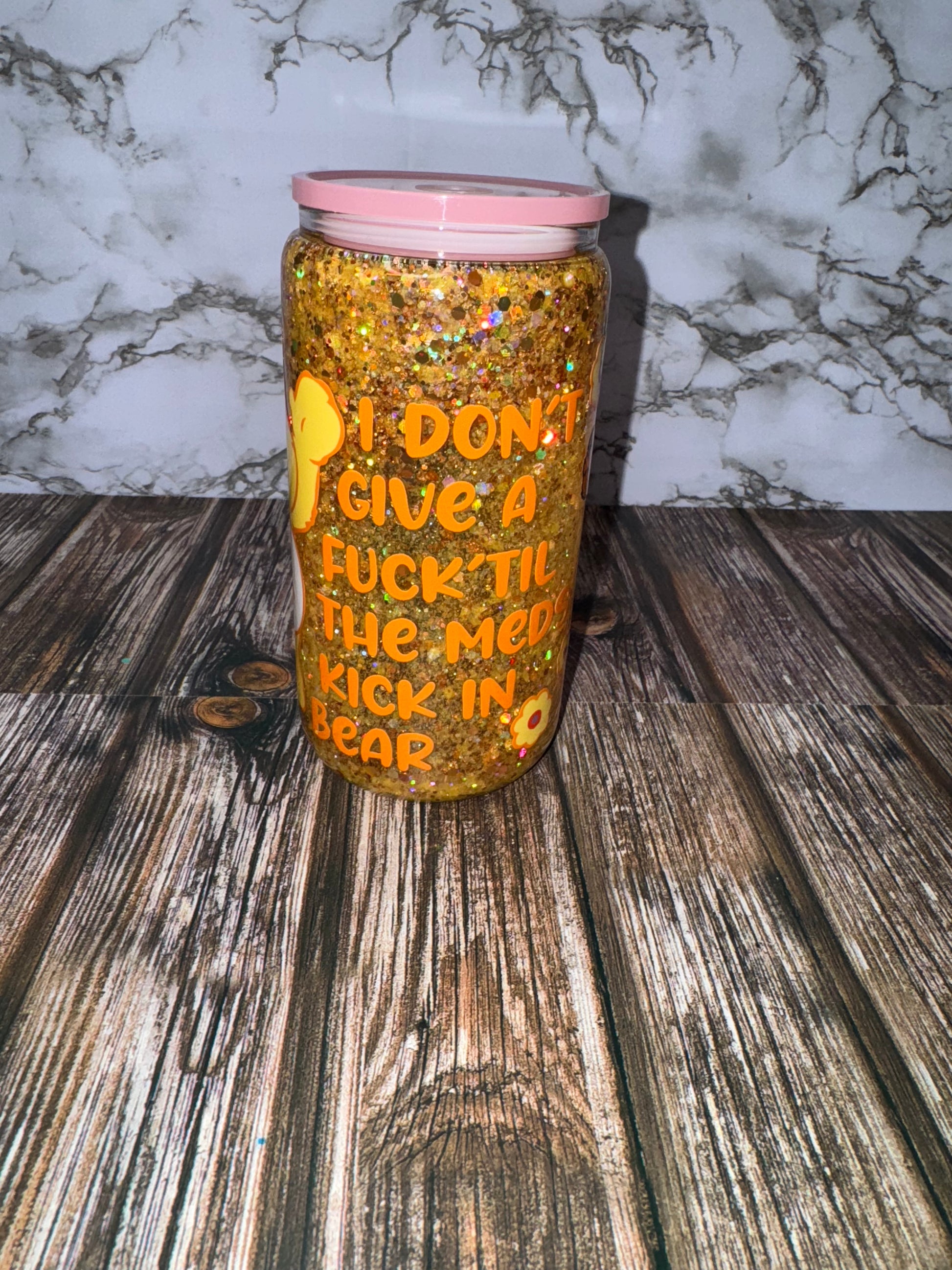 Introducing the Swear Bear, your new favorite adult tumbler. Adorned with gold glitter and a swear bear design, this tumbler is perfect for adding some fun to your daily hydration routine. Durable and stylish, this tumbler will keep your drink at the perfect temperature all day long.